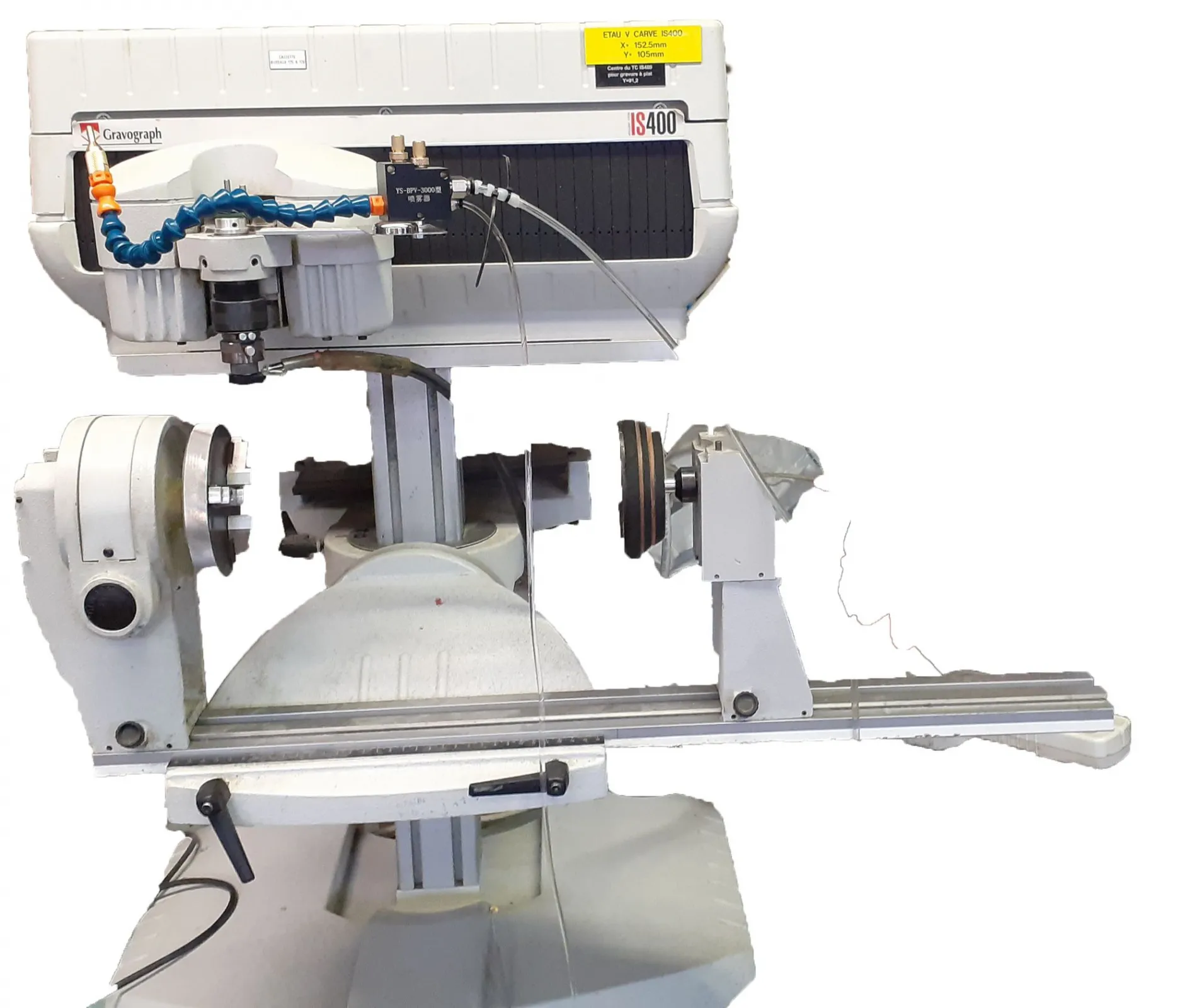 1 Gravograph IS 400 : Aire de gravure 305 x 210 mm, avec tourne cylindre pour gravure de pièces de Ø 350mm et hauteur 400mm