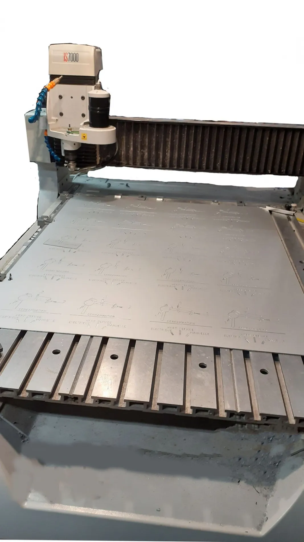 Mécanuméric : Gravure et fraisage grand format 2000x1250 maintien des pièces par dépression. (Broche HF Précise 1kW)
